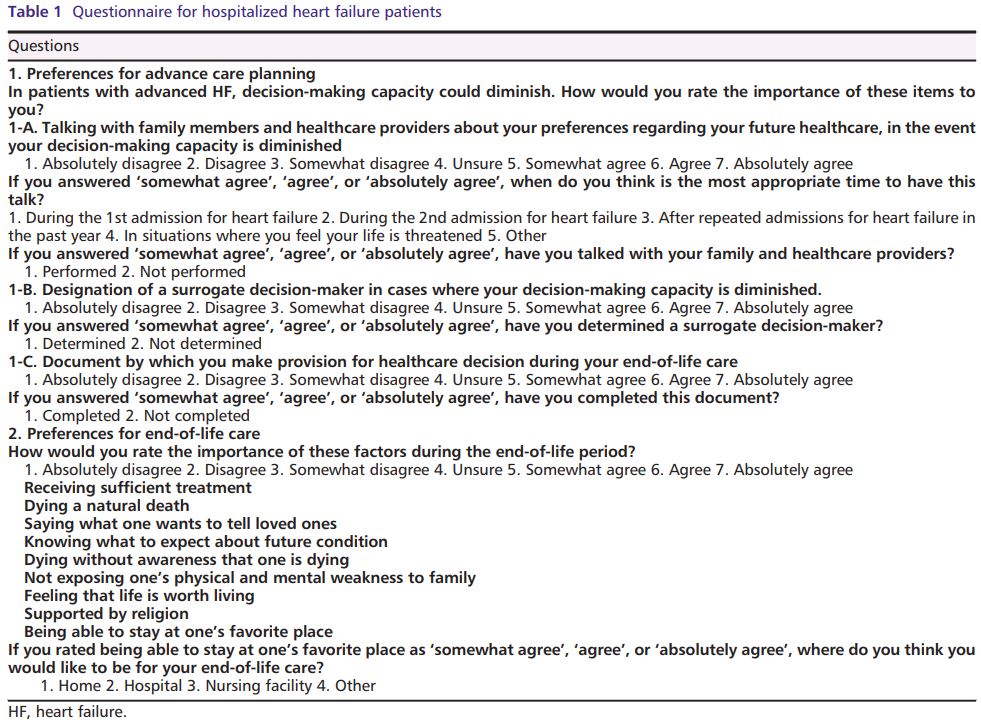 タイトル:Preferences on advance care planning and end-of-life care in patients hospitalized for heart failure