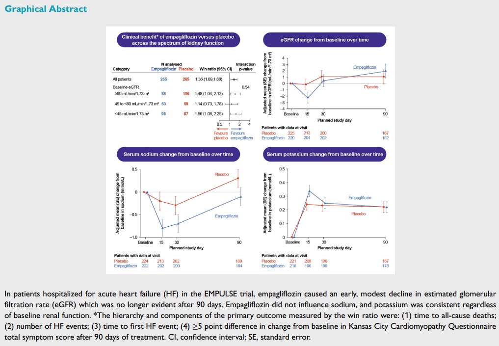 タイトル:Renal effects of empagliflozin in patients hospitalized for acute heart failure: from the EMPULSE trial