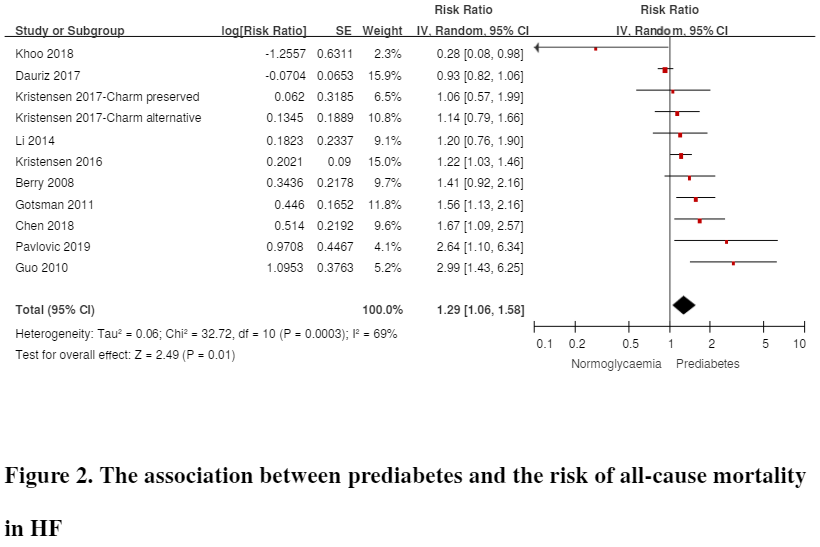 2021年3月31日までの研究について、電子データベース(PubMed、Embase、Google Scholar)を使用して、「正常血糖と比較した前糖尿病のHF患者における有害転帰リスク[相対リスクRR(95%CI)]」が報告されたメタ分析を検索した。