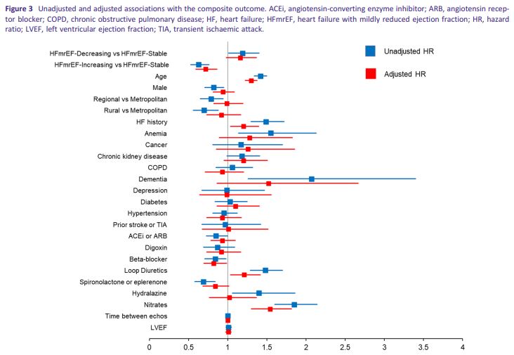 左室駆出率(LVEF)が10%以上の絶対増加を示したHFmrEF患者は、医学的治療を含む重要な交絡因子を調整した有害臨床転帰リスクが低かった。