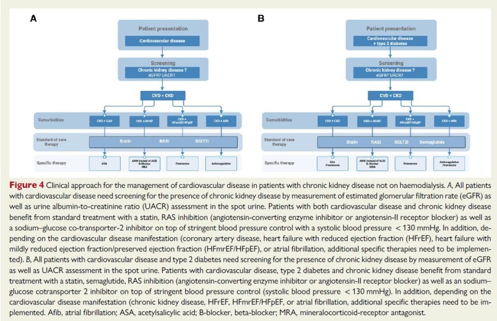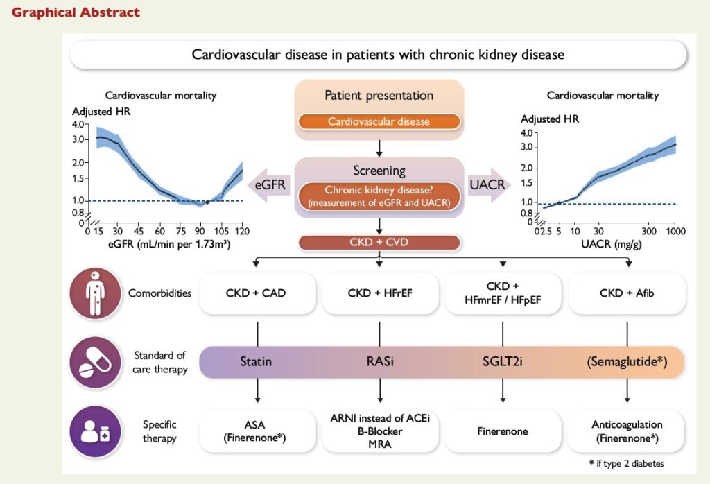 すべてのCVD患者は、CKD-EPIによるeGFRの評価とスポット尿中のUACRを評価することによってCKDの存在をスクリーニングすべきである。