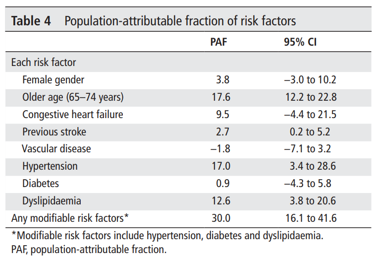 また、修正可能な危険因子(高血圧、糖尿病、脂質異常症)のIS/SEリスクに対する集団寄与危険割合(PAF)は、30.0%(95%CI 16.1-41.6)であった。