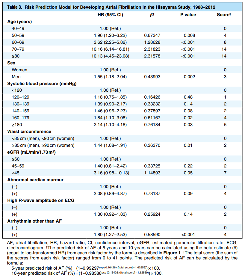 タイトル:Risk Prediction Model for Incident Atrial Fibrillation in a General Japanese Population – The Hisayama Study