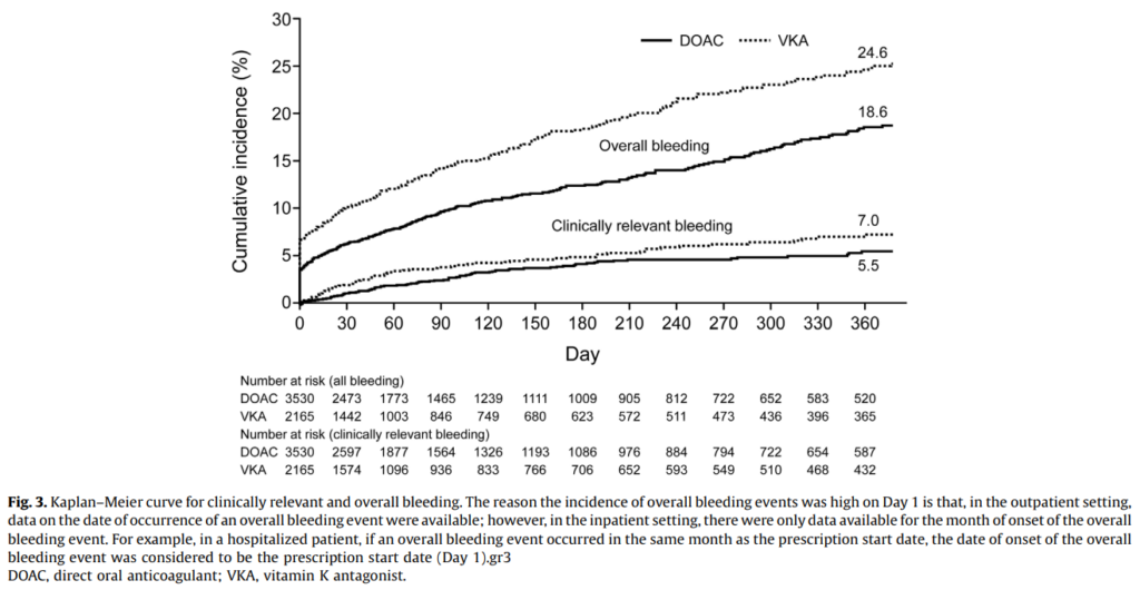 5,695例が分析対象となり、3,530例はDOACで治療され、2,165例はVKA(ビタミンK拮抗薬)で治療された。