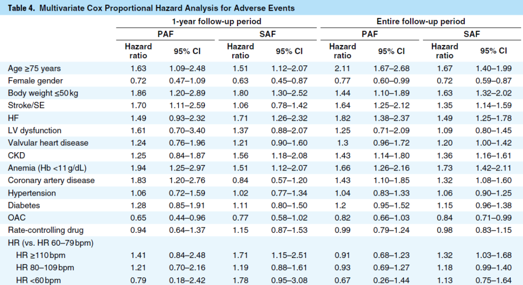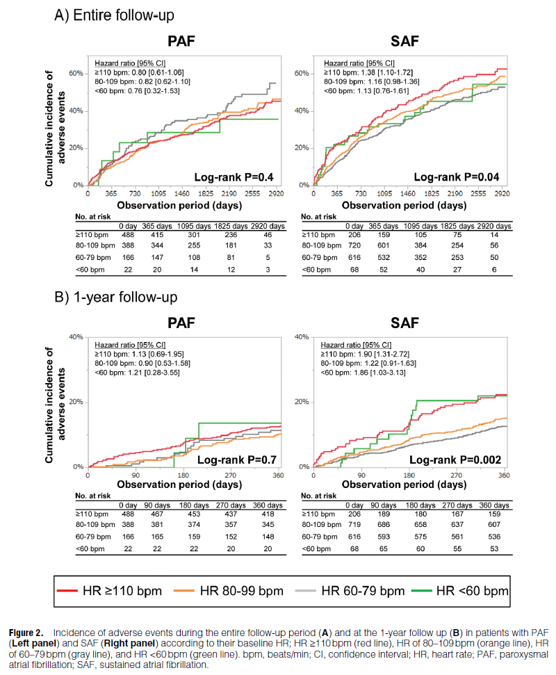 しかしながら、発作性心房細動患者の有害転帰リスクは、心拍数の違いと有害転帰リスクに関連がみられなかった。