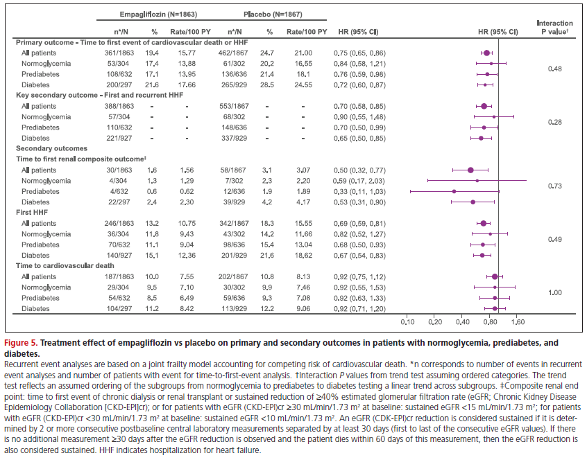 SGLT2阻害薬は、駆出率が低下した心不全(HFrEF)患者の転帰を改善するが、血糖状態(非糖尿病、耐糖能異常、糖尿病)が心不全および腎イベント抑制に影響を与えるかどうかについての追加情報が必要である。