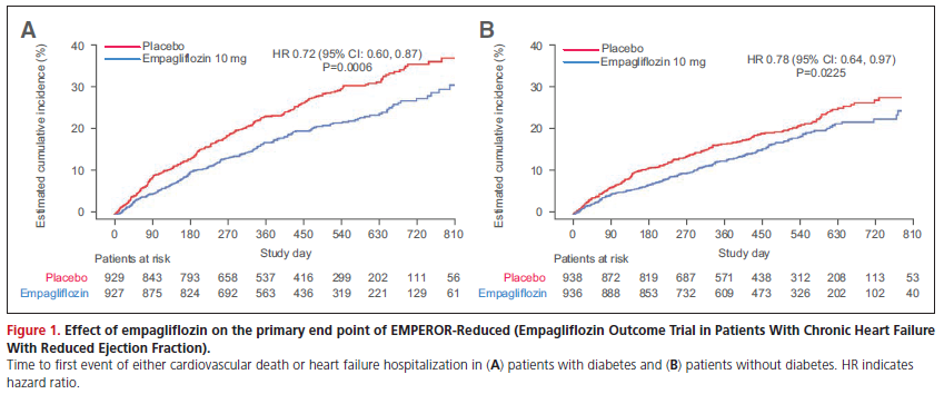 タイトル:Effect of Empagliflozin on Cardiovascular and Renal Outcomes in Patients With Heart Failure by Baseline Diabetes Status: Results From the EMPEROR-Reduced Trial