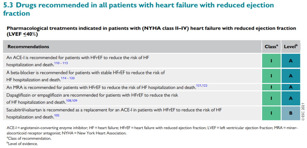 全ての駆出率が低下した心不全患者に推奨される薬剤