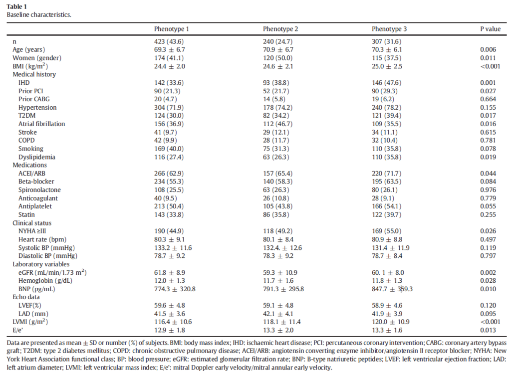 タイトル:Characteristics, prognosis and treatment response in distinct phenogroups of heart failure with preserved ejection fraction