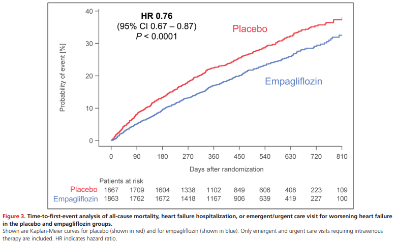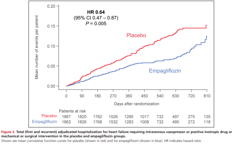 SGLT2阻害薬(エンパグリフロジン)は、駆出率が低下した心不全(HFrEF)の入院と外来患者における心不全イベントとそのリスクを低下する効果が治療開始早期に認められ、その効果は長期にわたり持続していることが示された。