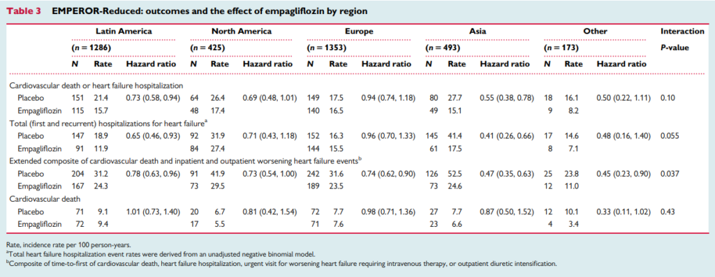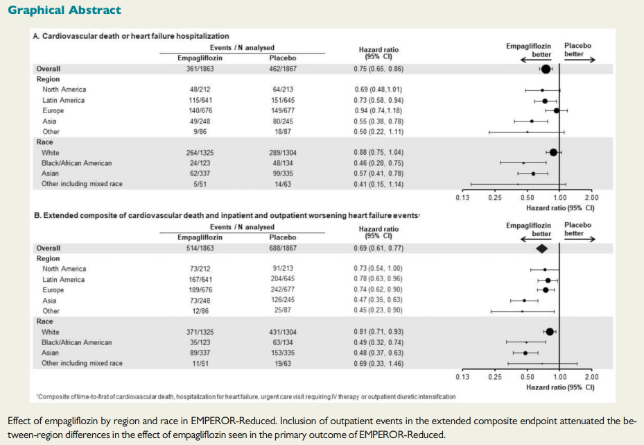 タイトル:Regional and ethnic influences on the response to empagliflozin in patients with heart failure and a reduced ejection fraction: the EMPEROR-Reduced trial