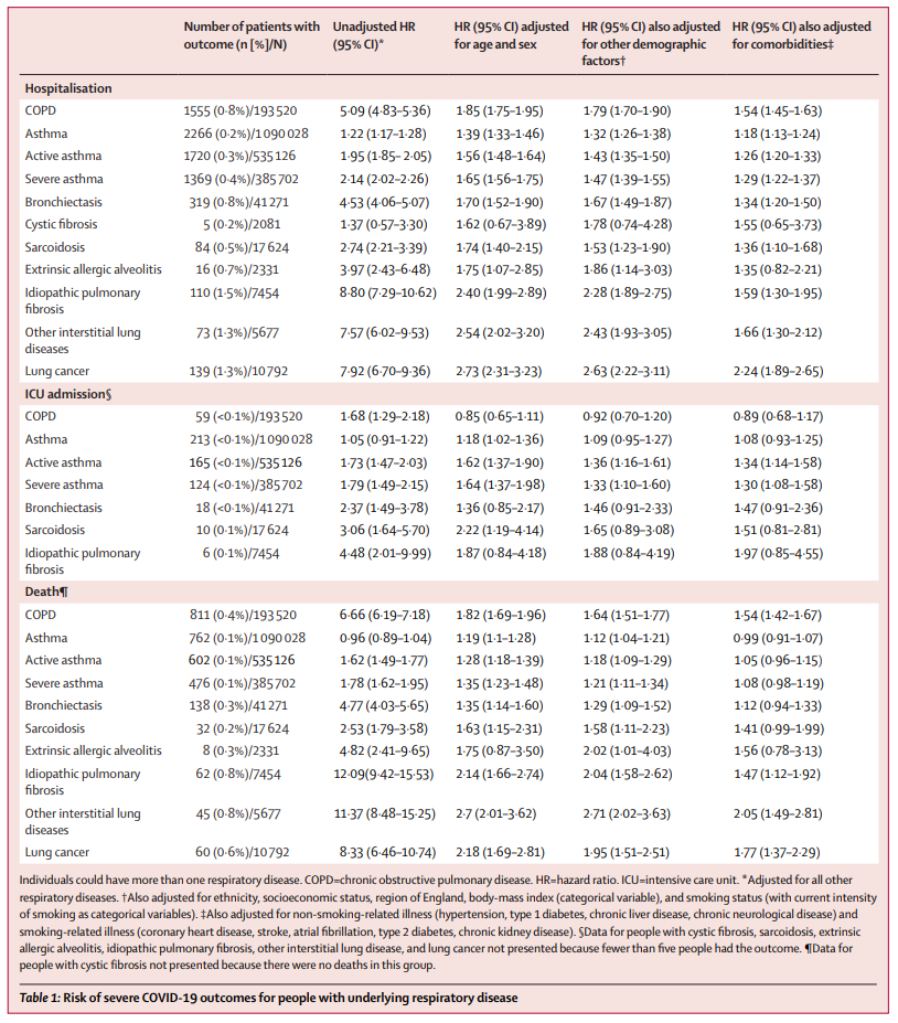 タイトル:Association between pre-existing respiratory disease and its treatment, and severe COVID-19: a population cohort study