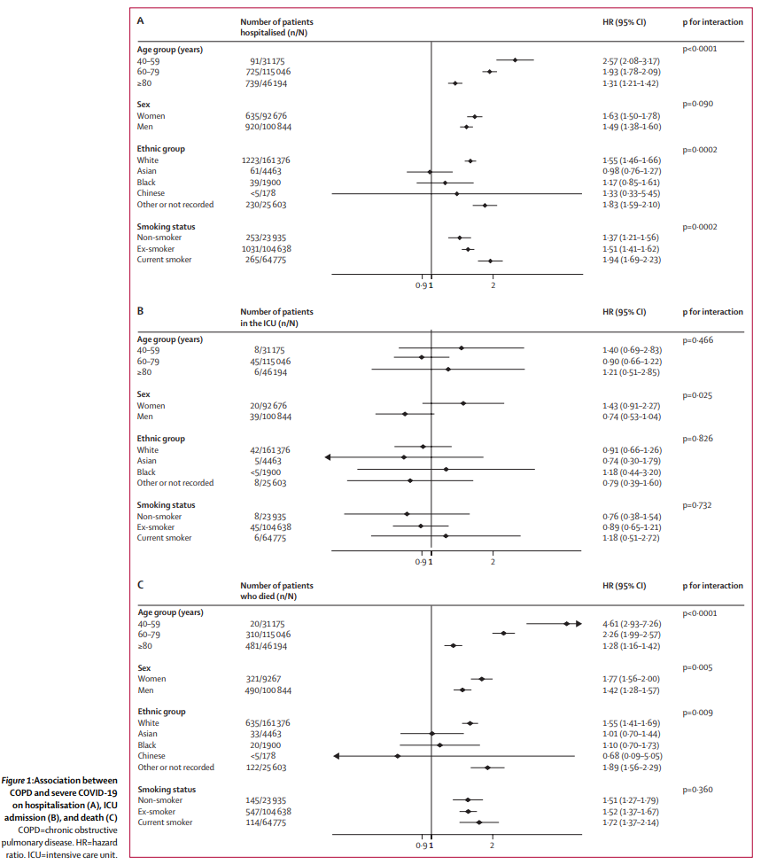 COPDと間質性肺疾患のある患者のリスクは、やや高いように見えるが、コロナ禍での死亡リスクは、一般的な疾患の死亡リスクよりもはるかに低かった。