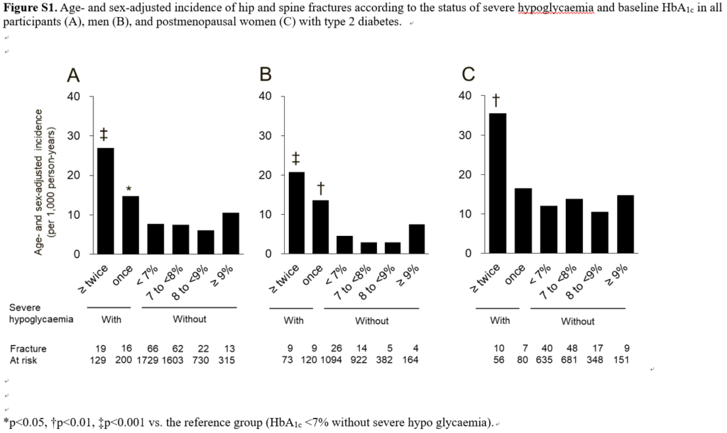 日本人2型糖尿病患者の骨折リスクの増加は、「重症の低血糖」と「血糖コントロール不良」の両方において有意な関連が認められた。