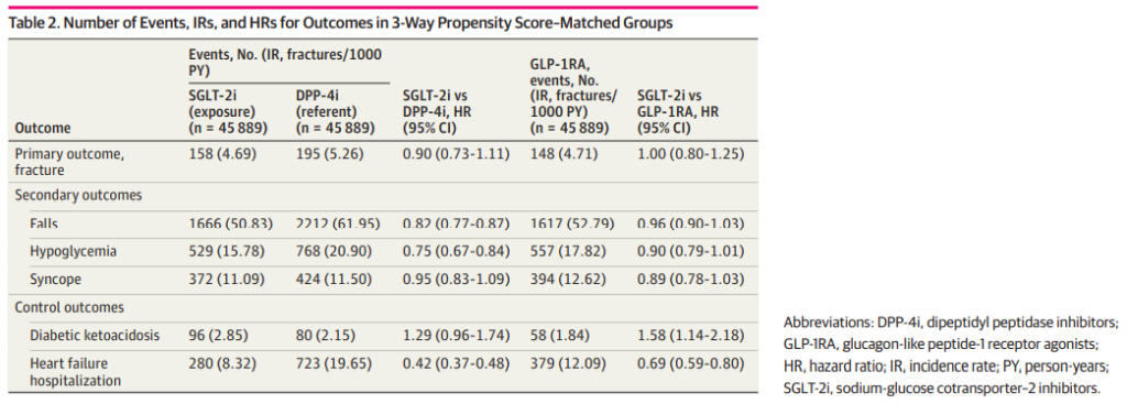 メディケアに登録された高齢2型糖尿病患者の新規治療において、SGLT2阻害薬の使用は、DPP-4阻害薬またはGLP-1 受容体作動薬と比較して、非外傷性骨折のリスク増加とは関連していないことが示された。