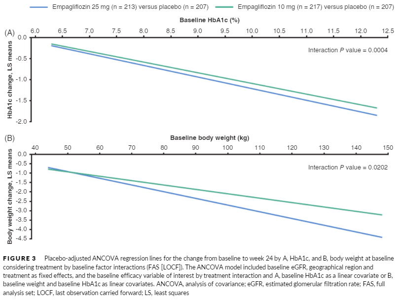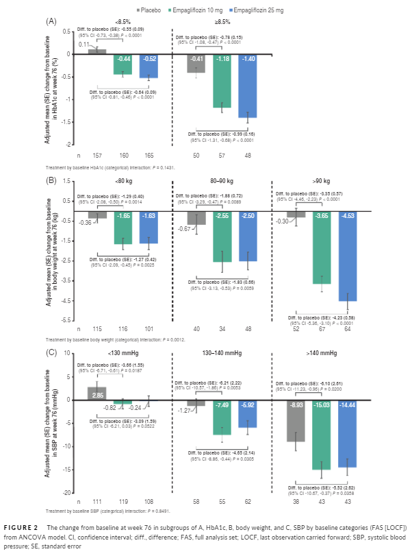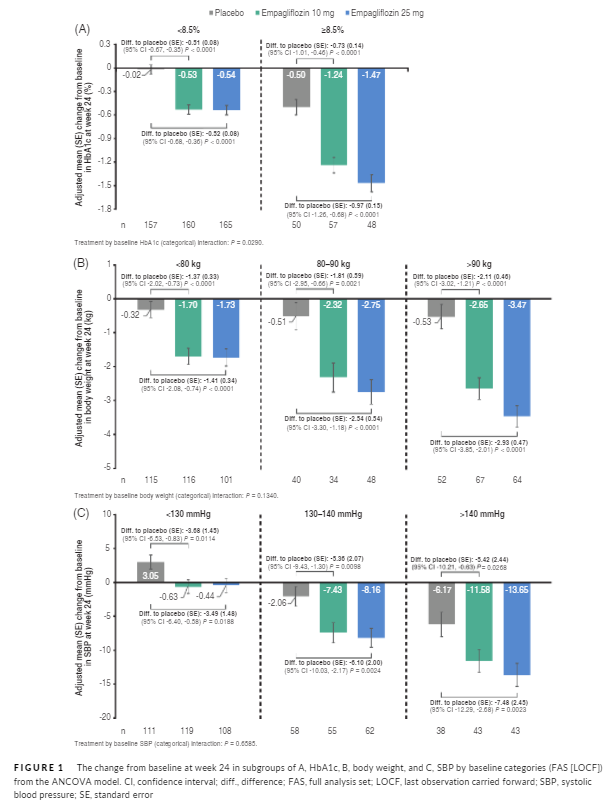 タイトル:Empagliflozin treatment effects across categories of baseline HbA1c, body weight and blood pressure as an add-on to metformin in patients with type 2 diabetes