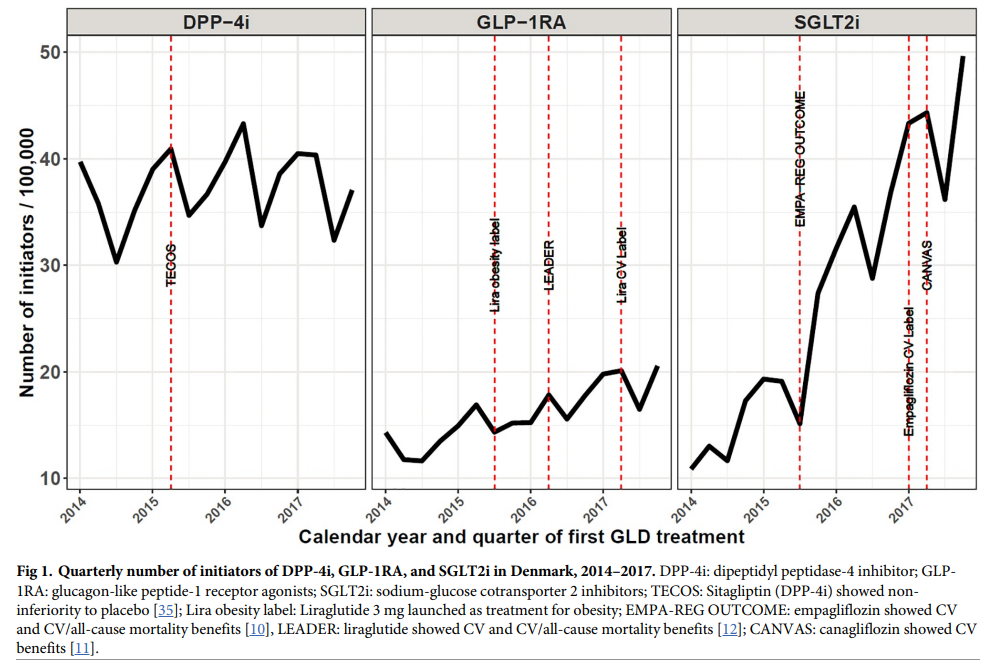タイトル:Changes in SGLT2i and GLP-1RA real-world initiator profiles following cardiovascular outcome trials: A Danish nationwide population-based study
