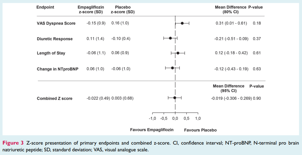 また、Zスコアによって標準化された4つの主要評価項目の合計Zスコアは、両群間で有意な差はなかった[平均差-0.019(95%CI -0.306〜0.269)、p=0.90]。