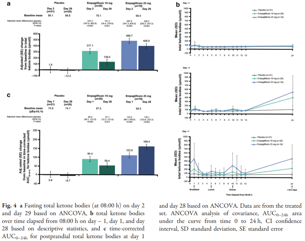 SGLT2阻害薬(エンパグリフロジン)は、単回投与と28日間の投与後の遊離脂肪酸と血中ケトン体を適度に増加させた。