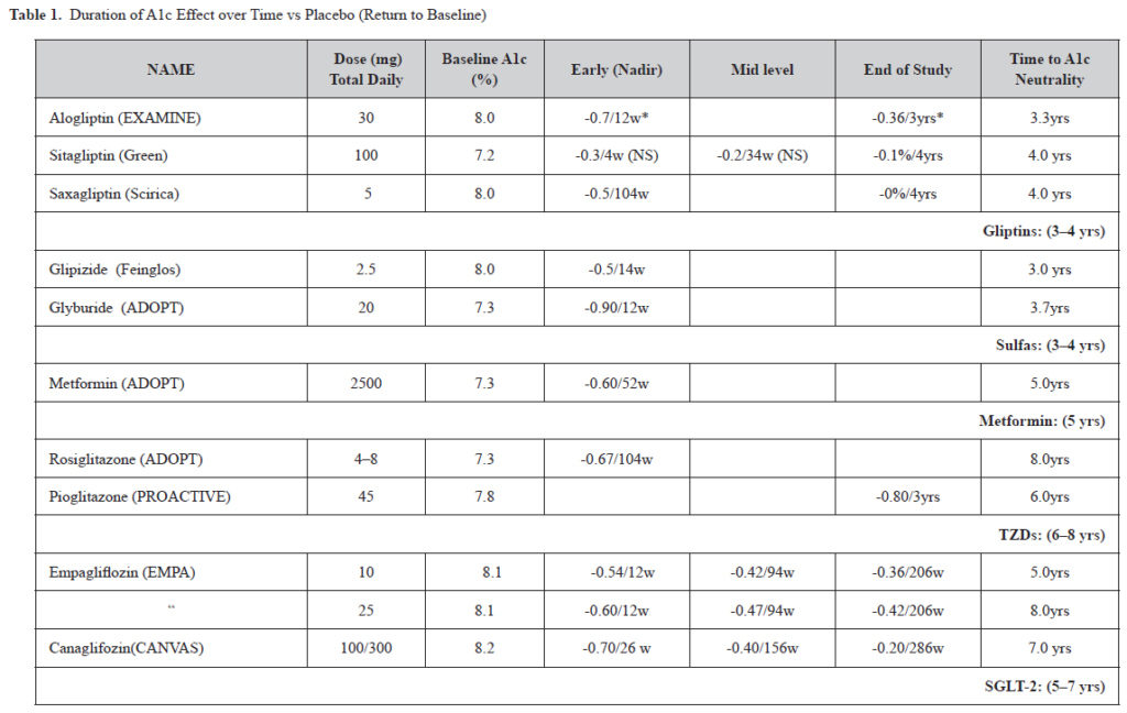 プラセボと比較した血糖降下作用の耐久性は、医療提供者が賢明に選択できるリスト化が望まれるだろう。