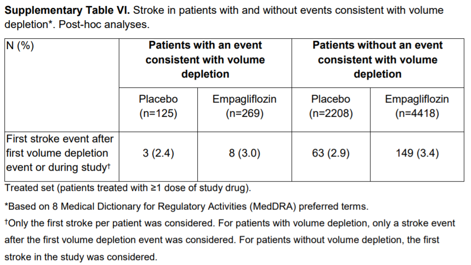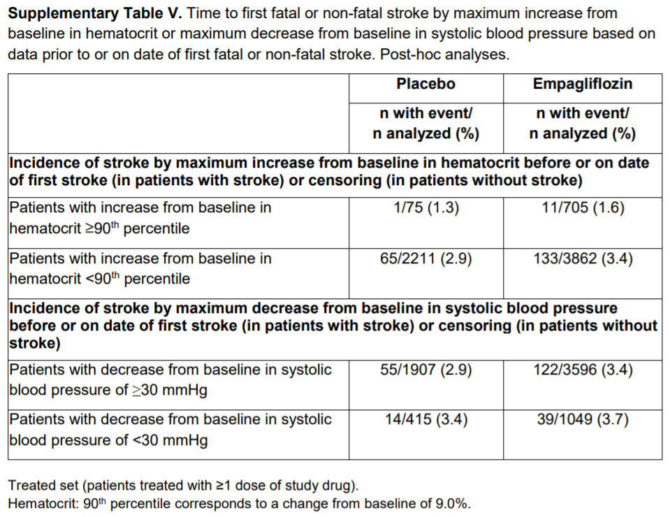 治験薬の最終投与から90日を超えてからの脳卒中イベントは、エンパグリフロジン群18例、プラセボ群3例であった。