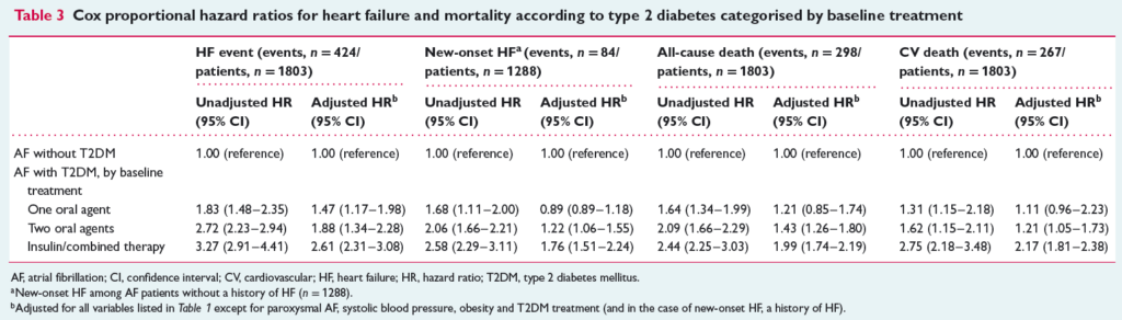 タイトル:Type 2 diabetes increases the long‐term risk of heart failure and mortality in patients with atrial fibrillation