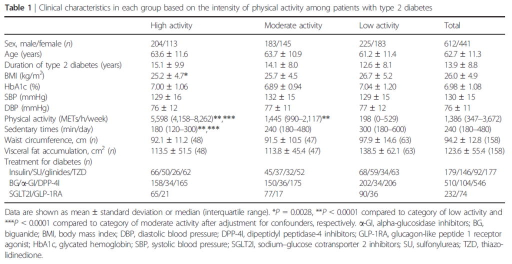 タイトル:Impact of physical activity and sedentary time on glycated hemoglobin levels and body composition: Cross-sectional study using outpatient clinical data of Japanese patients with type 2 diabetes