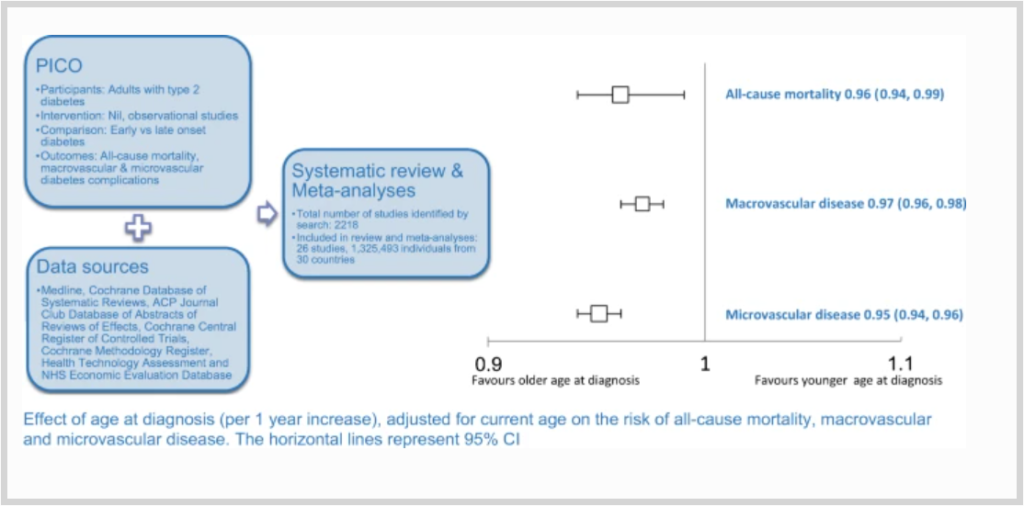 タイトル:Impact of age at type 2 diabetes mellitus diagnosis on mortality and vascular complications: systematic review and meta-analyses