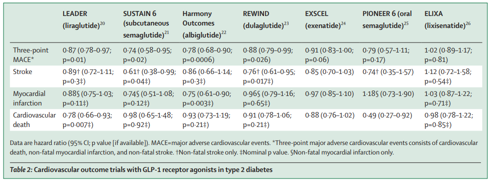 「ADA-EASDコンセンサスレポート」では、アテローム動脈硬化性心血管疾患を伴う2型糖尿病の患者、およびアテローム動脈硬化性心血管疾患の高リスク患者における心血管イベントの減少に関して、GLP-1受容体作動薬での治療を優先している。