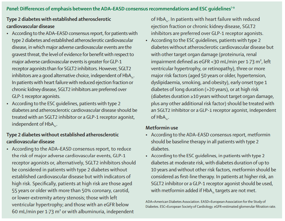 【ADA–EASDコンセンサスレポートとESCガイドラインの推奨事項の違い】
