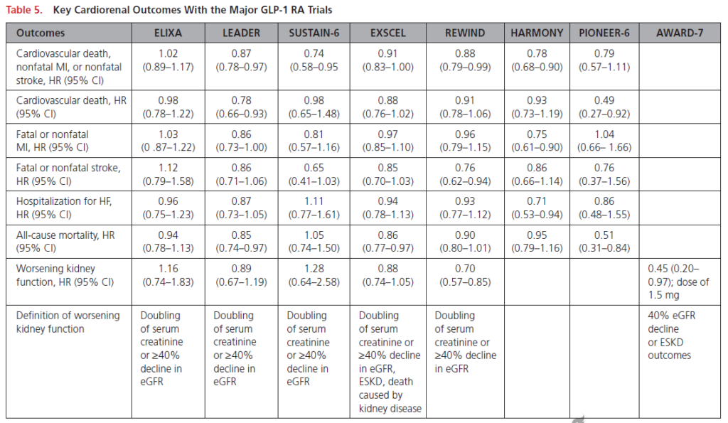 補足:現時点では、重度のCKD(透析を除くステージ4と5 )に対するGLP-1 受容体作動薬の安全性と有効性を考慮して、CKDの初期段階ではSGLT2阻害薬を優先的に使用し、重度のCKD(eGFR30未満)の段階でGLP-1 受容体作動薬に移行する層別アプローチを検討する。 ただし、進行中であるSGLT2阻害薬の腎アウトカムRCTの結果により、治療法が変更となる可能性も十分にありうる。
