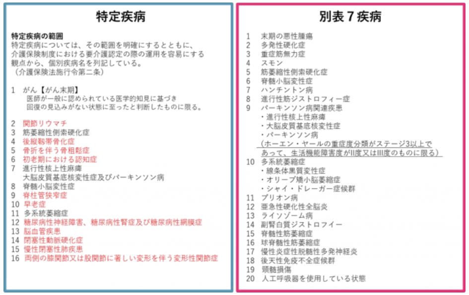 厚生労働大臣が定める疾病等別表第7に該当している患者でも、介護認定を受けていれば介護保険が優先となる。