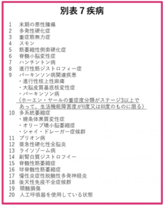 補足)厚生労働大臣が定める疾病等別表第7を下記に示す