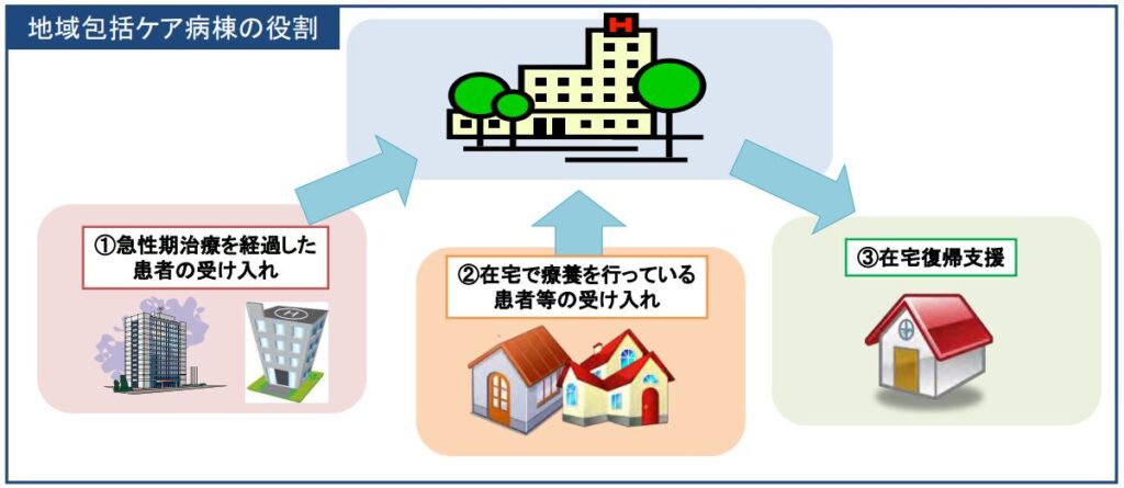 地域包括ケア病棟に入院中の患者に対して算定する入院料で、急性期治療を終え病態の安定した患者や、自宅などで療養中の患者が対象となる。