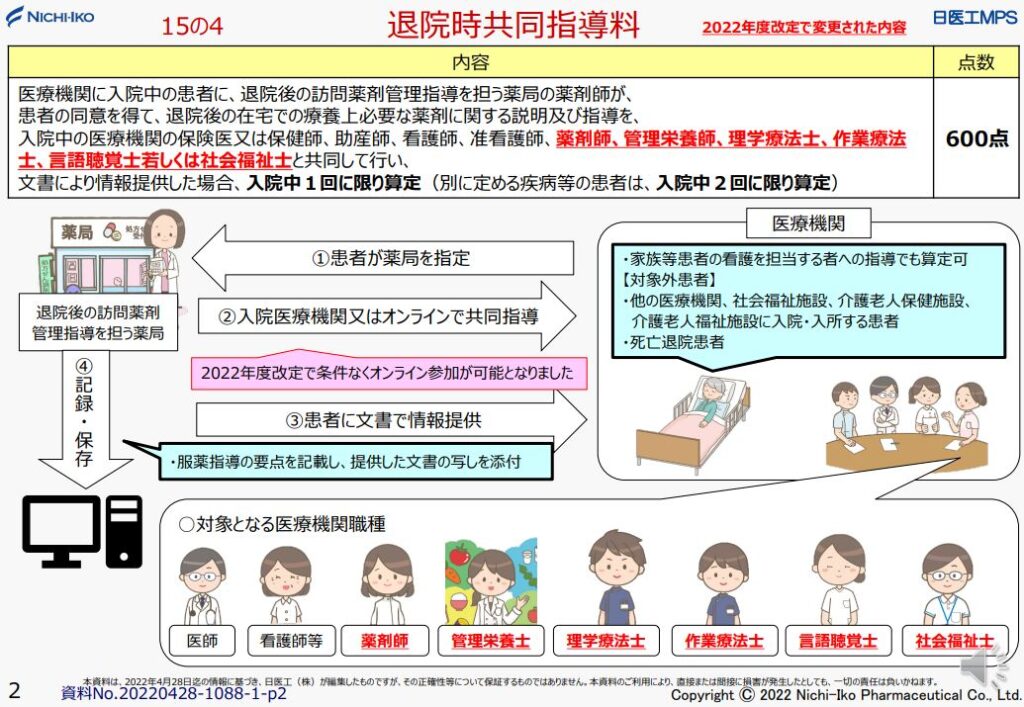 退院時共同指導料2(令和4年度改定)のポイント