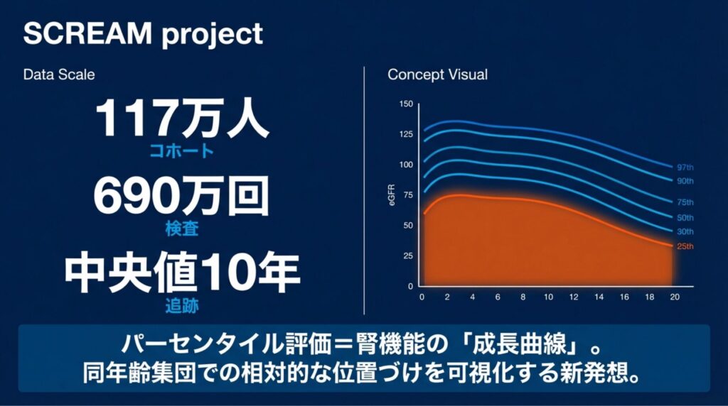 ① 論文の全体像 ― 117万人×690万回のeGFR「成長曲線」