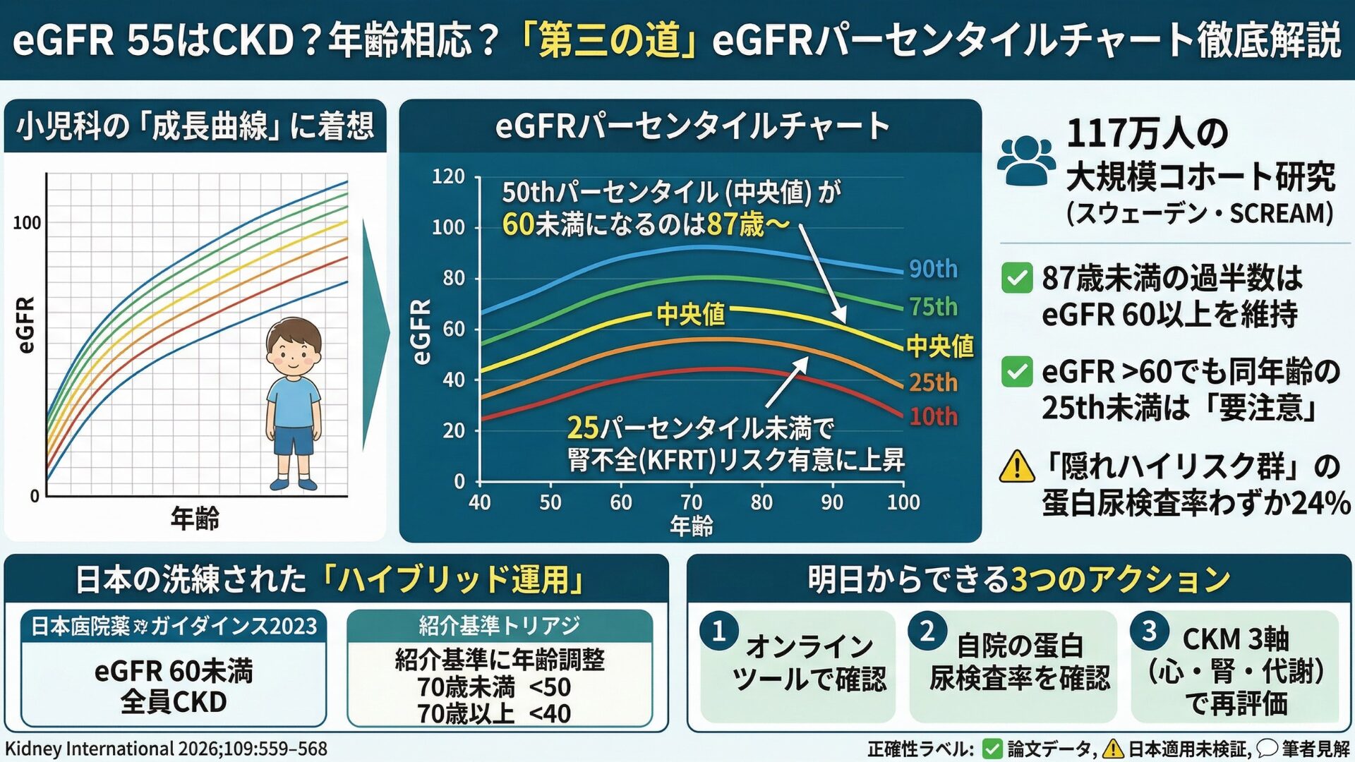 eGFRパーセンタイルチャートとは?117万人研究が示すCKD早期発見の新基準|Yang論文(Kidney Int 2026)徹底解説