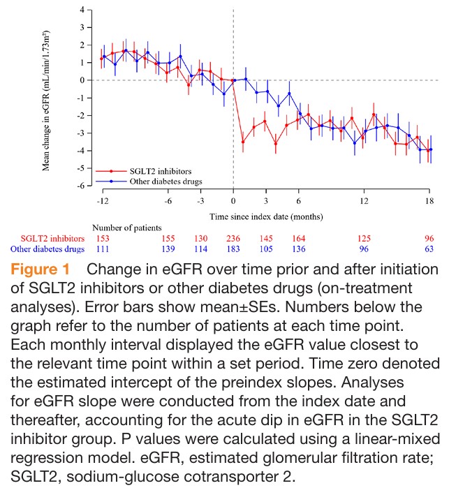 T2DMを有するCKD患者に関する過去の報告と同様に、SGLT2阻害薬の開始後には初期ディップが観察されました。