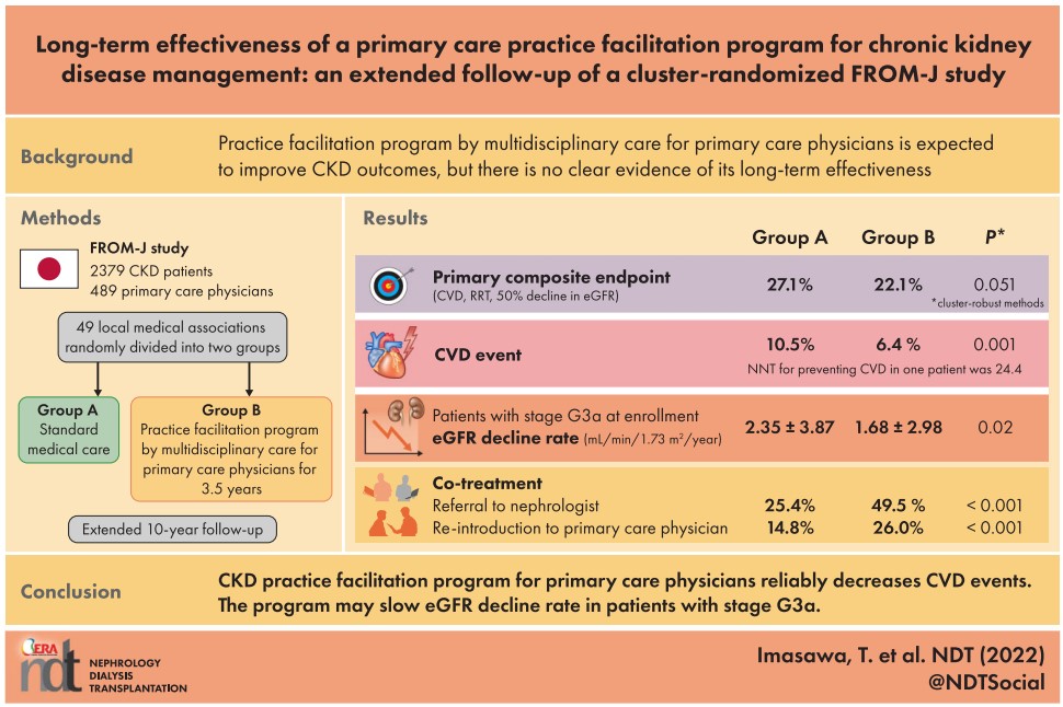 タイトル:Long-term effectiveness of a primary care practice facilitation program for chronic kidney disease management: an extended follow-up of a cluster-randomized FROM-J study