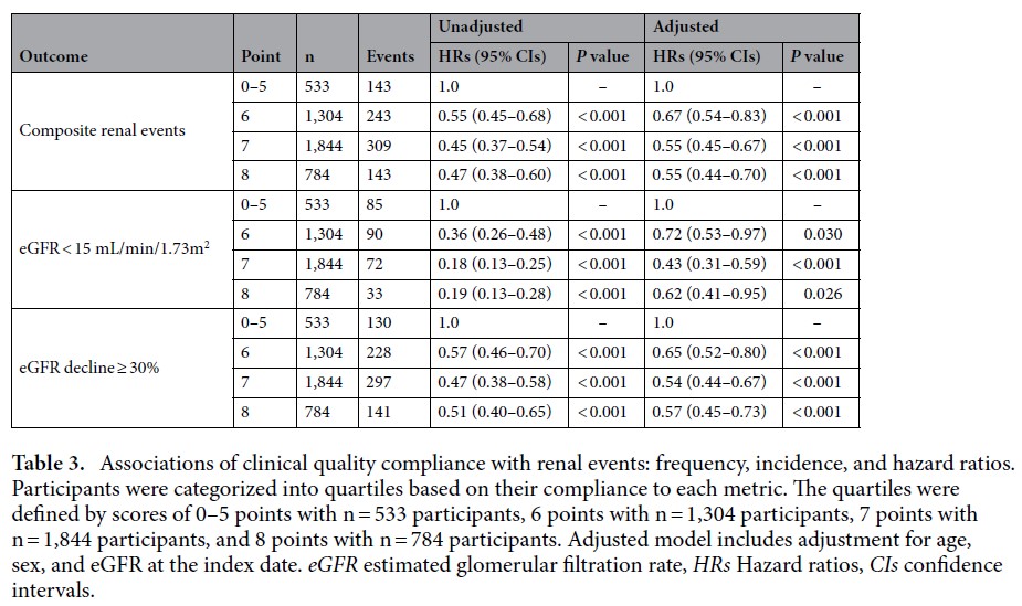 タイトル:Evaluating the associations between compliance with CKD guideline component metrics and renal outcomes