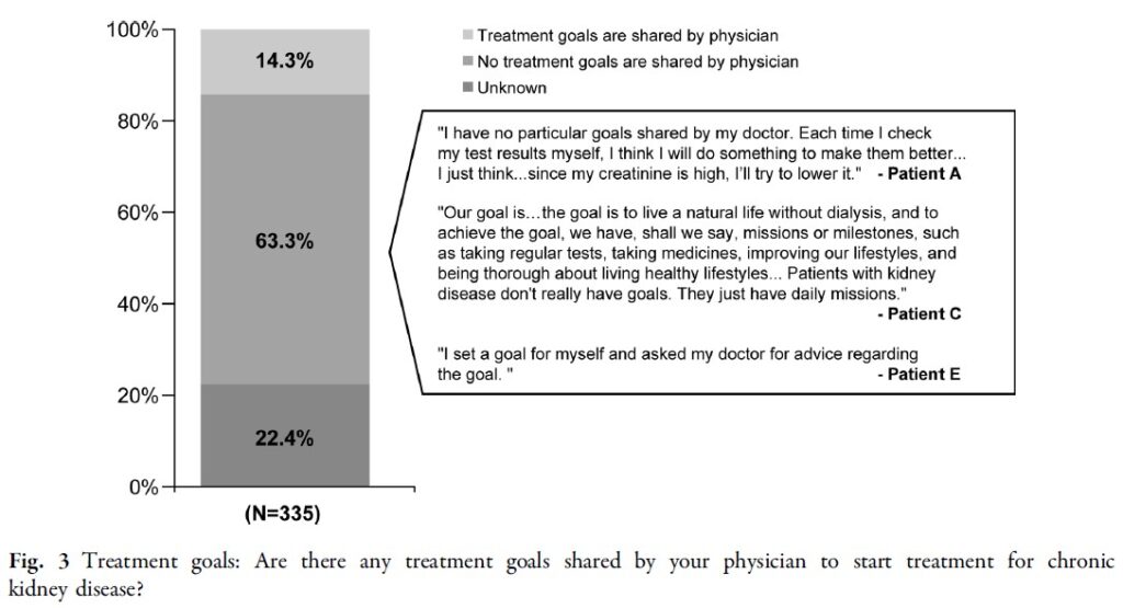CKD治療開始時に治療目標を提示された参加者はわずか14.3%(48/335名)でした(図3)。
