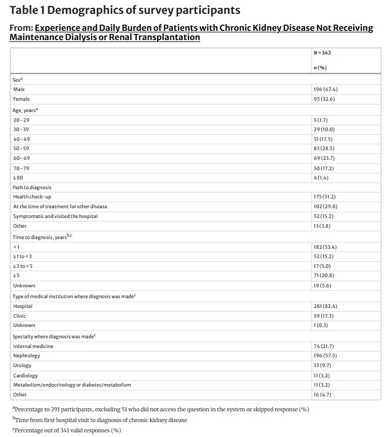 タイトル:Experience and Daily Burden of Patients with Chronic Kidney Disease Not Receiving Maintenance Dialysis or Renal Transplantation