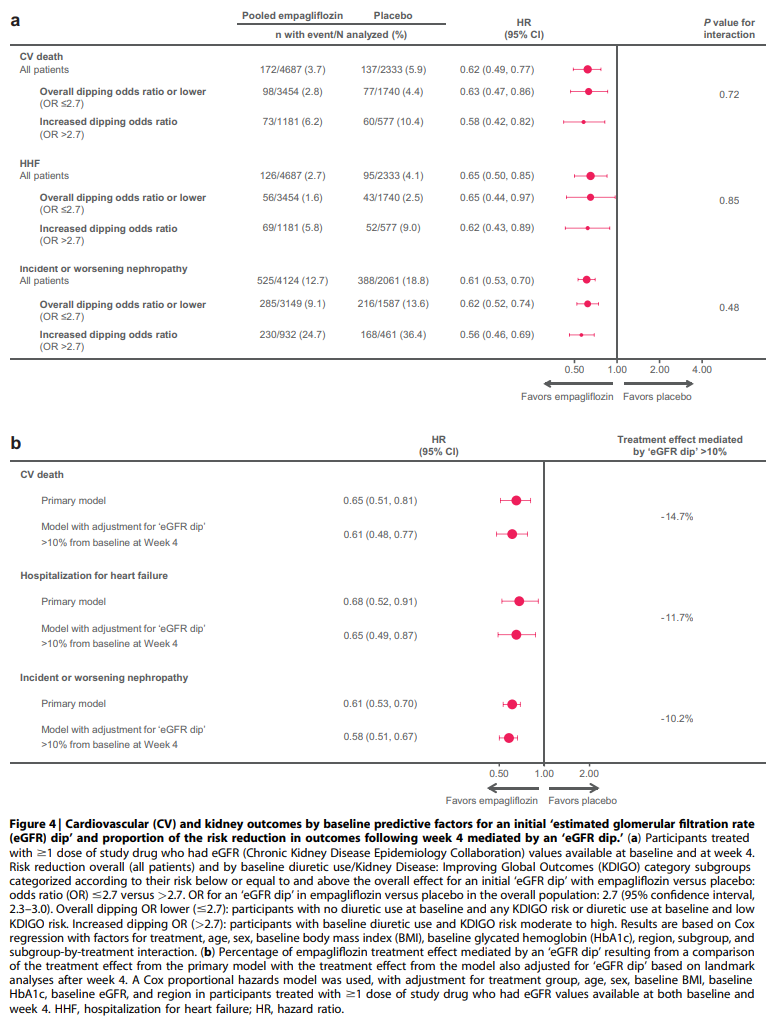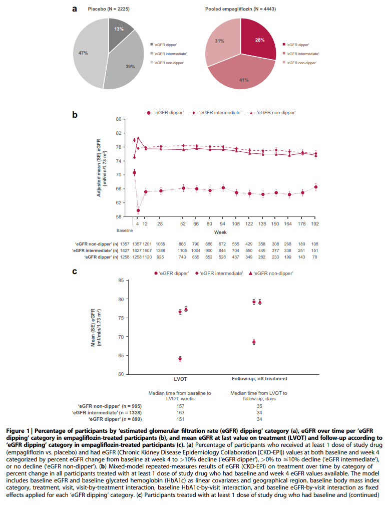 タイトル:Characterization and implications of the initial estimated glomerular filtration rate ‘dip’ upon sodium-glucose cotransporter-2 inhibition with empagliflozin in the EMPA-REG OUTCOME trial